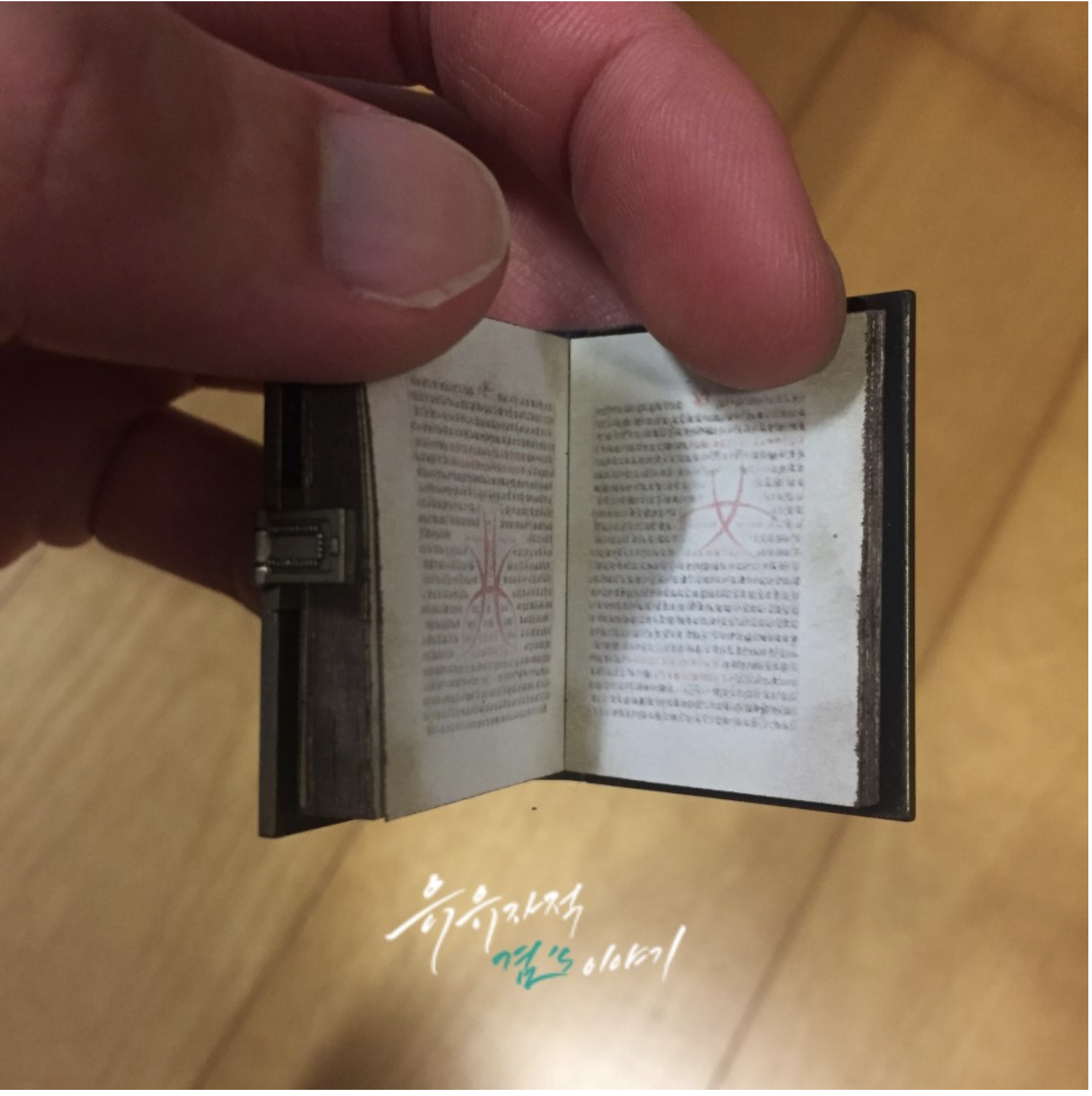 마법진 책루즈 생각보다 굉장히 디테일합니다. 작은 사이즈임에도 불구하고 각 페이지에 자잘한 내용으로 빼곡히 채워져 있고 모든페이지에 알지못하는 글자가 다적혀있습니다. 영화속 허공에 동그라미를 그리며 차원문을 열때 사용하는 슬링 그리고 아가모토의 눈 닫힌버전과 열린버전, 각종 손 7가지, 마법서, 마법진까지 영화연출 그대로 재현해두었습니다.