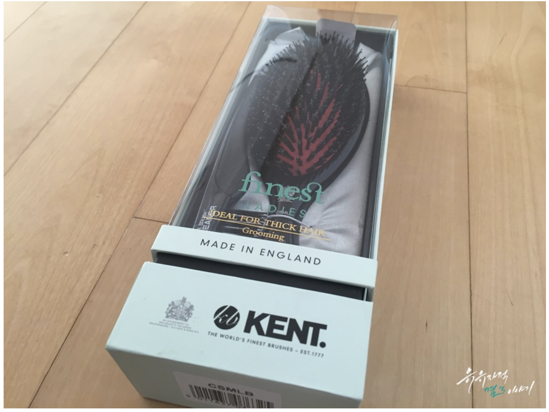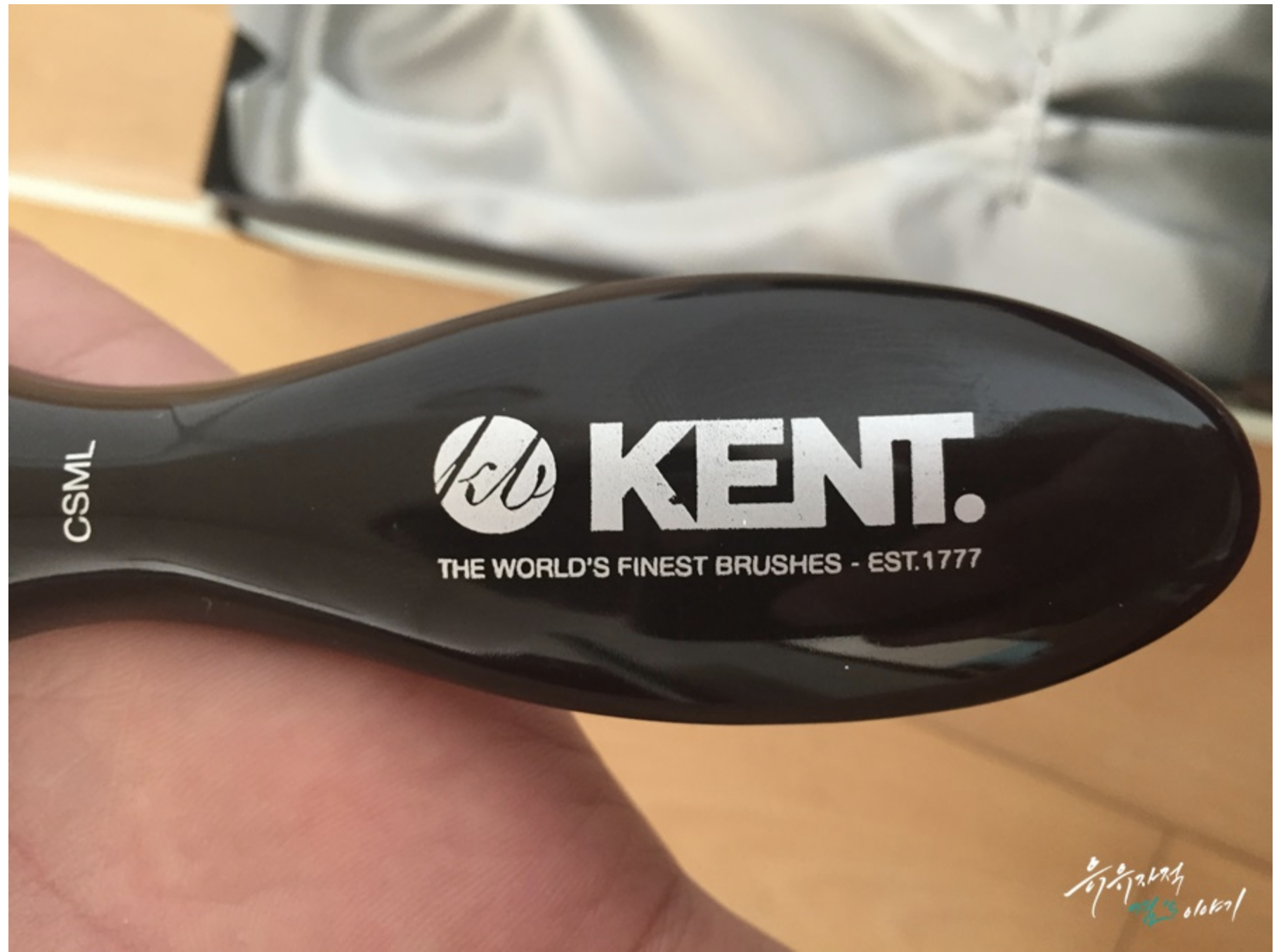 손잡이 부분에 새겨져 있는 켄트로고. 여기서 잠깐 켄트에 대해 소개를 해드리자면 1777년에 설립되어 200년 넘게 브러쉬만 만들어 왔으며 조지3세때 부터 각 분야의 최고의 상품에게만 부여하는 왕실납품권을 수여받고 현재까지도 영국왕실에 납품되고 있습니다. 또한 브러쉬 제조회사중 가장 많은 250여가지 제품을 생산하며 존루이스, 셀프리지스, 해롯백화점 및 유명 헤어살롱에 공급되며 세계 50여개국에 브러쉬를 수출하는 회사라고 합니다.