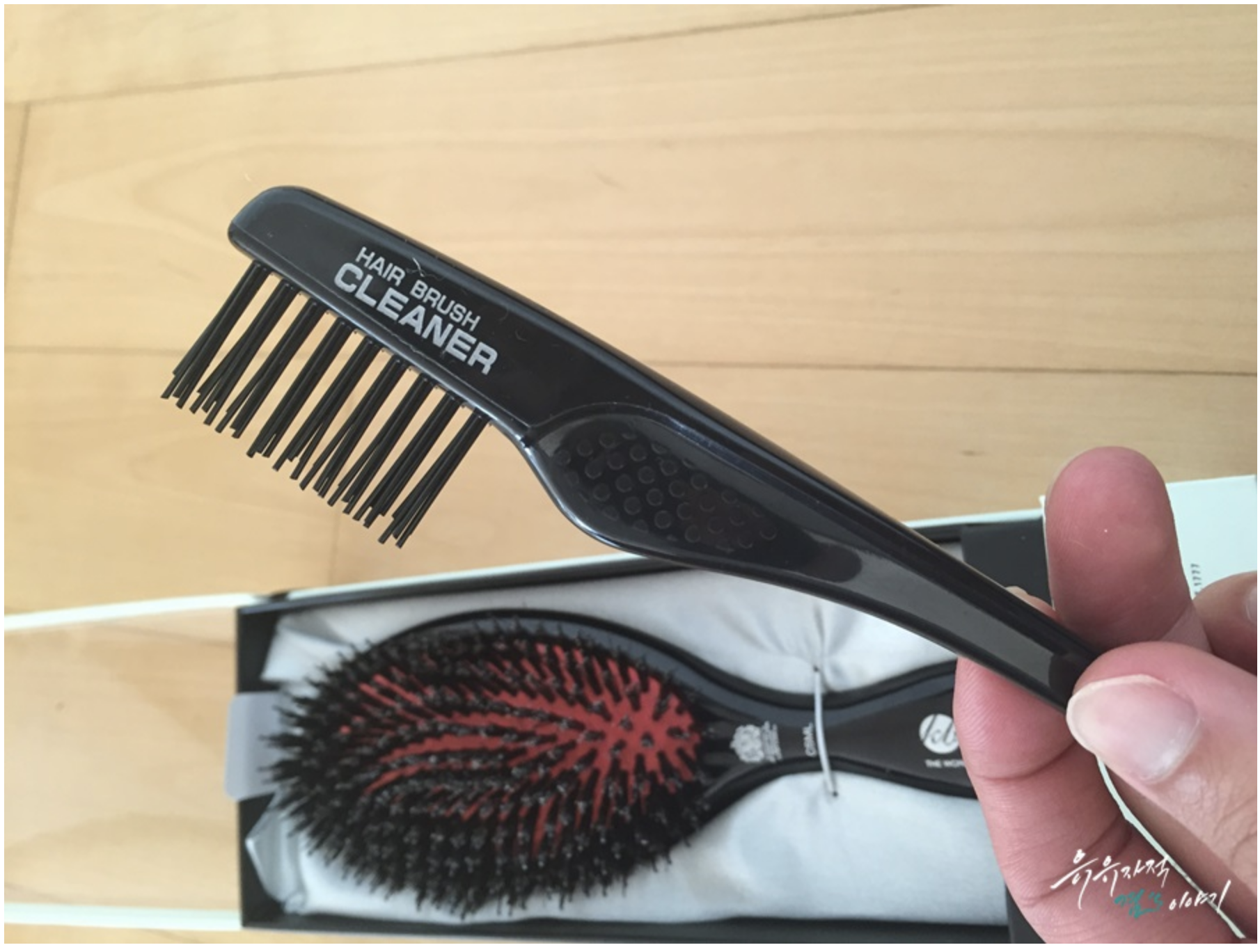 겨울철에 탈모량이 많아져서 걱정이시잖아요? 저 또한 조금이나마 도움이 될까해서 구매하게된 영국왕실에서 사용하는 켄트빗 이게 일반 플라스틱 브러쉬가 아니고 멧돼지털로 만든 브러쉬라 빗치고는 가격이 많이 비쌉니다. 가격답게 케이스도 나름 고급스럽게 포장되어있네요. 제품안에 같이 동봉되어있는 클리너. 청결을 위해서 빗질하고 난후 바로 클리너로 먼지나 머리카락을 제거해주는게 좋습니다.